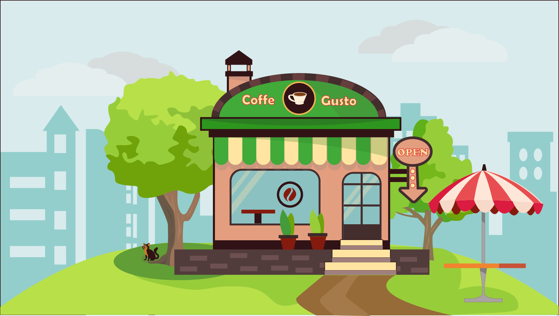 Нарисуем с помощью основных фигур городской пейзаж и разберем особенности флэт иллюстрации.